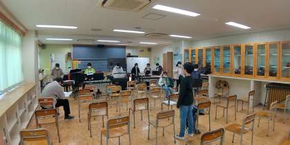 休み時間を使って、楽器の練習をしています。