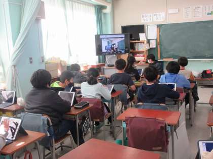 自分たちで作成した俳句を、オンラインも利用しながら公開し合い、良いと感じた俳句を選びます。