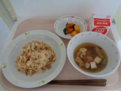 また、味噌汁には、セリが入っていて、味噌汁も歯ごたえがありました。