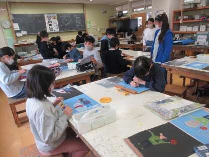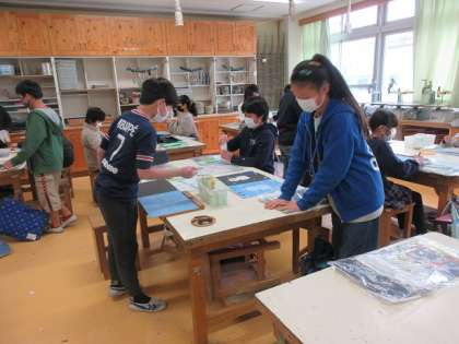 5年生の図工で、版画の制作です。