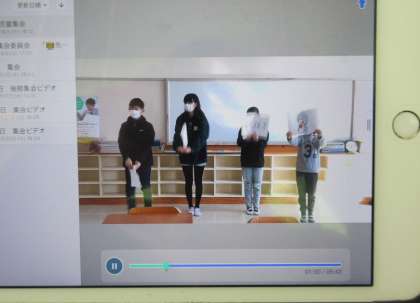 集会委員の子ども達がろくがした映像をロイロノートを使って各クラスへ配信しています。