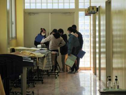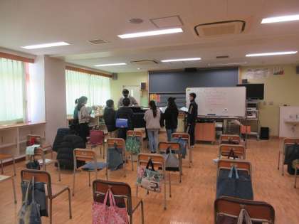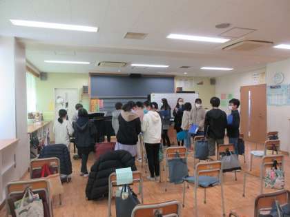 3つのグループに分かれ、パート練習をしながら、歌唱学習をしています。