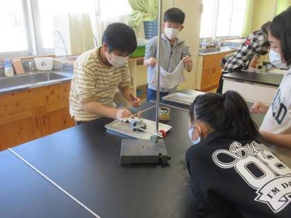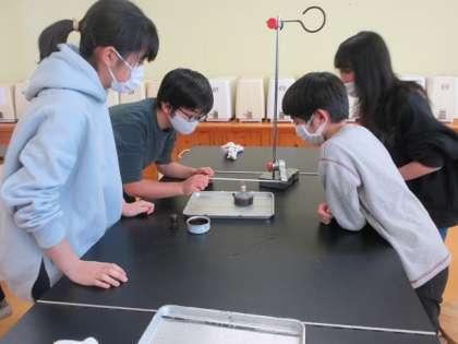 家庭科室を使って、アルコールランプを使った実験をしています。