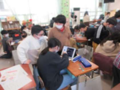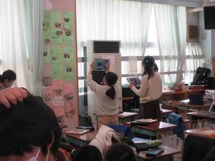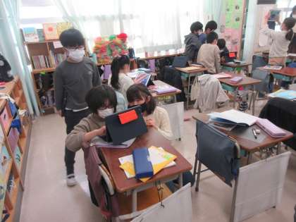 子ども達は、何を紹介しょうか、思い思いに考えを巡らせ、友だちと相談しています。