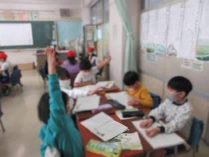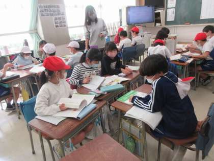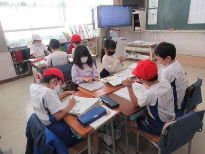 これまで学習してきた「スーホーの馬」についての感想をグループ内で発表していました。