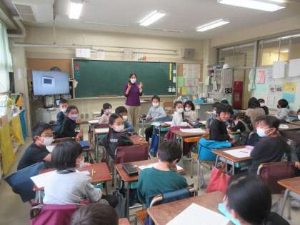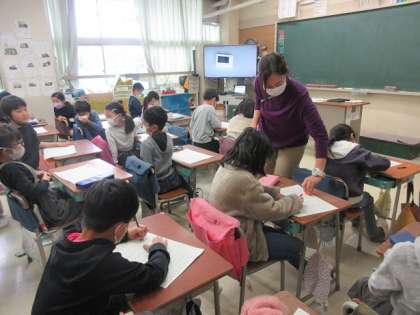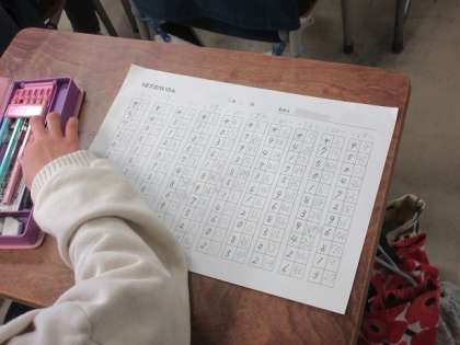 2年3組では、クラス全員で九九チャレンジをしていました。