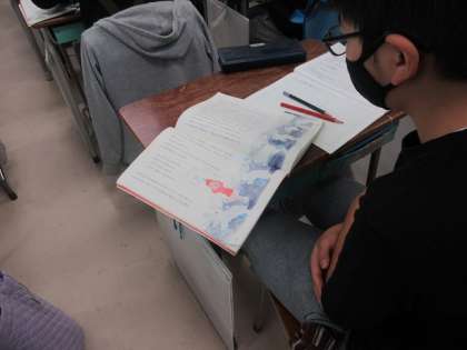 物語教材を読みながら、登場人物の気持ちを想像しています。