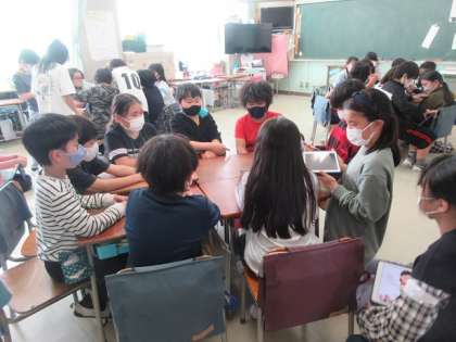 4年生は、自分たちの1年を振り返り、3年生に紹介をしました。