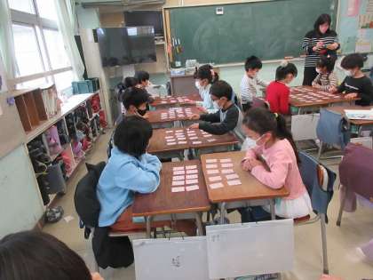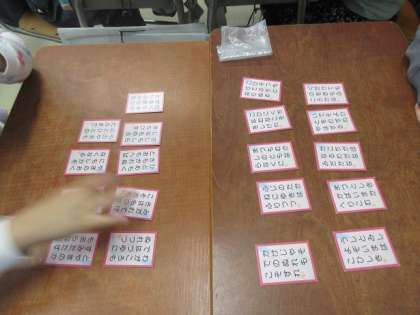 20枚の札をならべています。たくさん覚えられるといいですね。