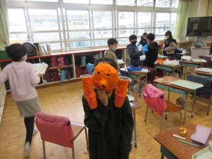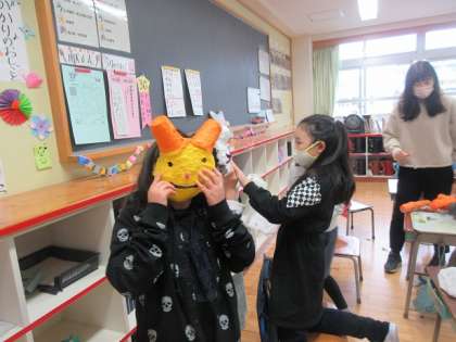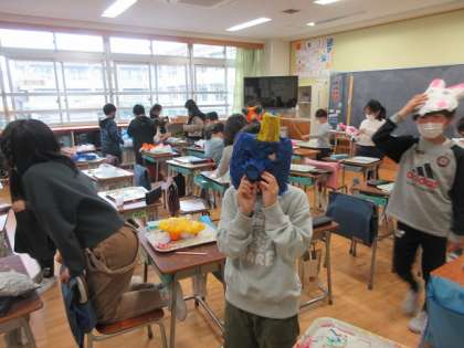 お面が完成しました。様々な形があり、楽しいですね。
