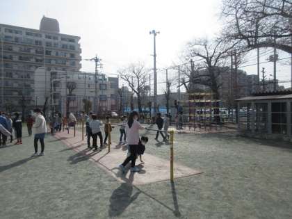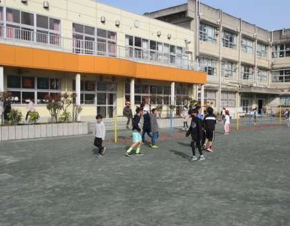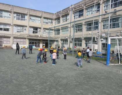 校庭はしっとりしており、太陽の光でポカポカと暖かい朝でした。
