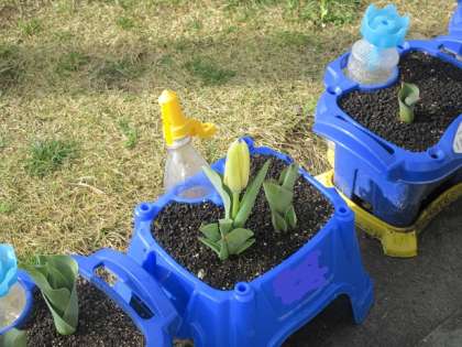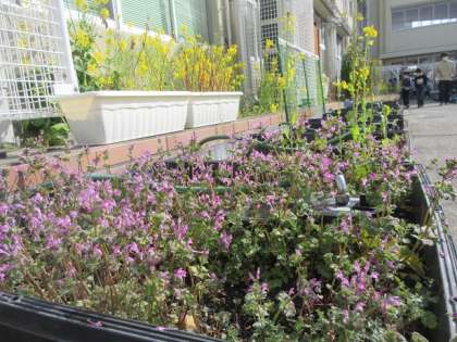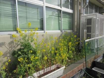 職員室の前の花壇や植木鉢には、春が近づいているのを感じることができます。