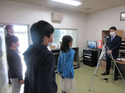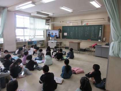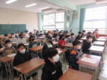 年度初めの始業式は、代表児童は6年生です。最上級生としての意気込みを話してくれました。各教室では、テレビを前に、真剣な面持ちで、始業式に臨んでいます。