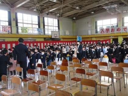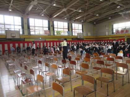 先導の先生の誘導で式場へと入ってきた1年生です。
