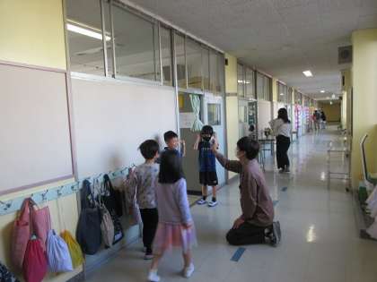 教室の前で写真を撮っているクラスもあり、スタートの時を大事にしています。