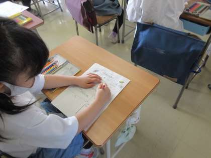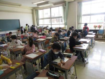2年生の教室では、「ことしのめあて」カードを書いていていました。