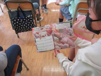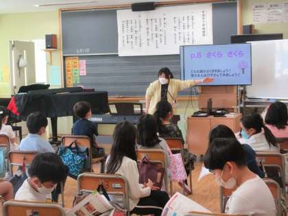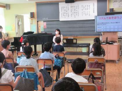 音楽室に入っていくと、リーダーになっている子に合わせて、手拍子を打っています。