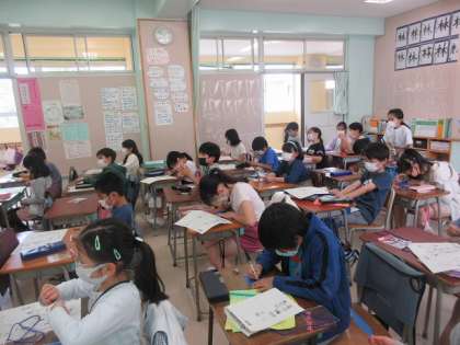学習中に使う名札ですが、表は漢字で、裏はローマ字で。