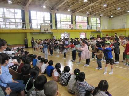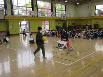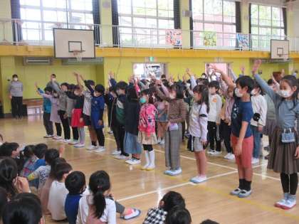 2〜6年生は、学校の約束をクイズにしたり、劇にしたりして、1年生へ紹介しました。