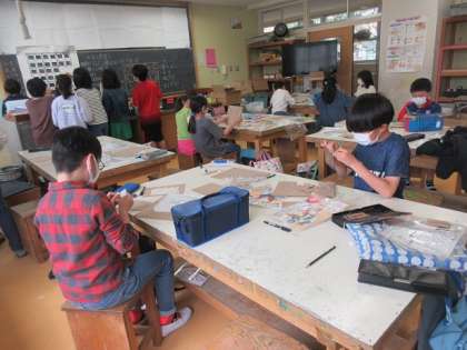 5年3組の図工の時間です。
