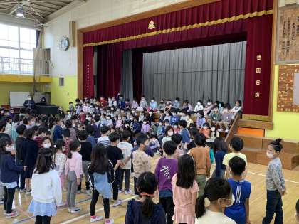 初めて全校が揃う場で、元気いっぱい発表することができました。