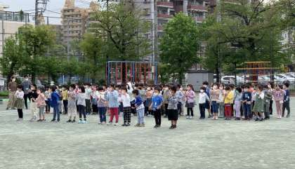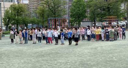 その後校庭で、1年生からはお礼の言葉と歌を届けました。