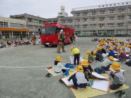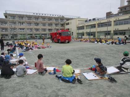今日は1・2年生の消防写生会でした。