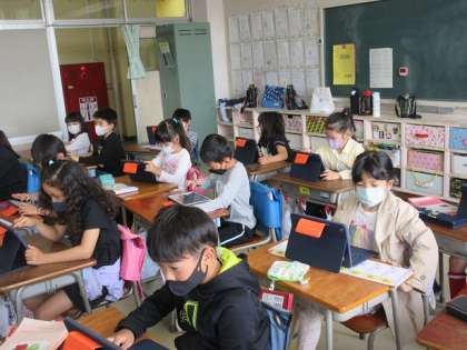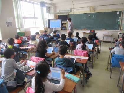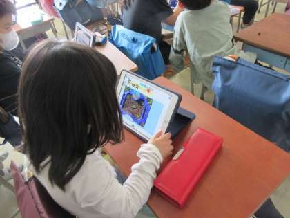 校庭で撮影してきた、トマトの植木鉢をロイロノートにアップしています。