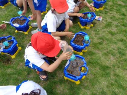 子供たちは、早く花が咲かないか今から楽しみにしています。