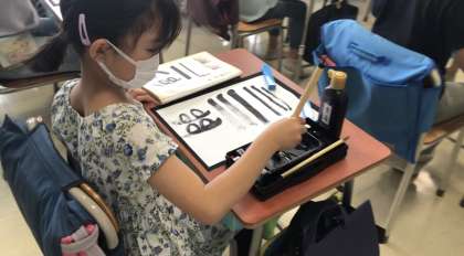 筆をほぐしたり、用具の名前を確認したり、覚えることがいっぱいの授業でしたが、真剣に聞いている子がたくさんいました。