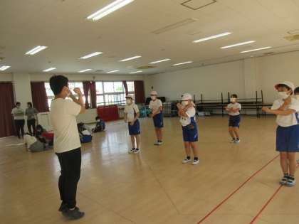 準備運動係は、ラジオ体操の練習に余念がありません。