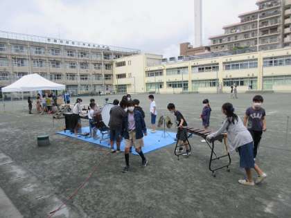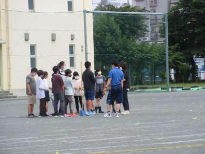 朝から降っていた雨もお昼には上がり、校庭の水たまりもあっという間になくなりました。5時間目は、5・6年生の係児童が明日の準備をしました。