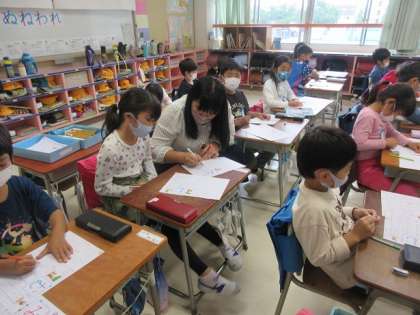 ひらがなの練習も半分を過ぎ、ずいぶんと進みました。
