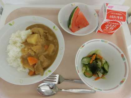 デザートは小玉すいかをカットしました。瑞々しくて食感もよく、子どもたちもおいしそうに食べていました。今週もいいスタートが切れそうです!