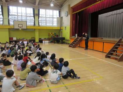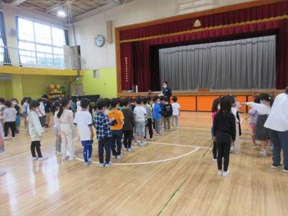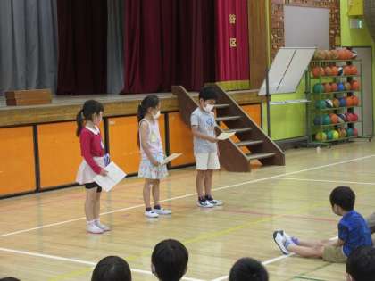 今日は、天気も良くなく肌寒いので、体育館でプール開きだけをやりました。