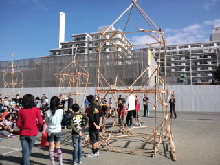 高さを追求したものや、デザインを工夫したものなど様々な作品が校庭に並びました。