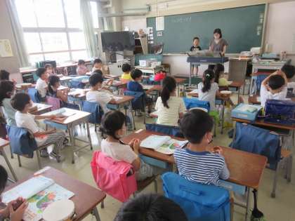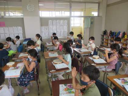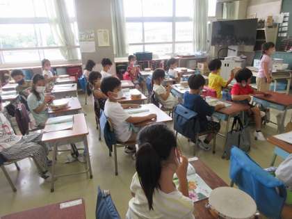 「かたつむり」の歌に合わせて、手拍子やカスタネットをたたきます。