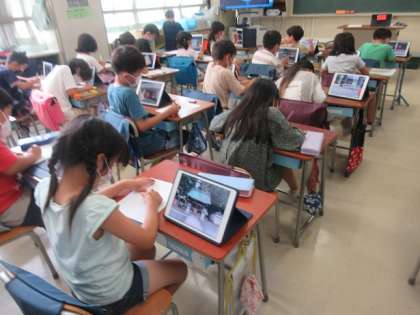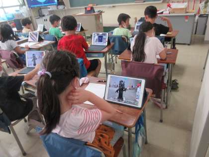 教室に入るとタブレットの中に不思議な映像が映っています。