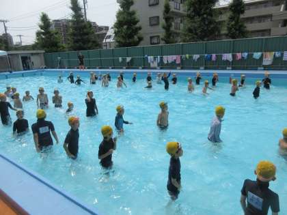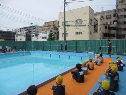 3年3組と4組がプール開きを行い、すべての学年・学級で水泳の学習が始まりました。