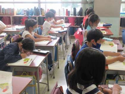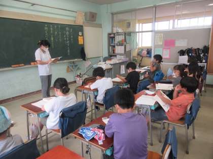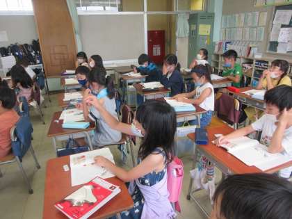 教科書を読みながら、出てきた言葉から、様子や感じたことを考えいます。