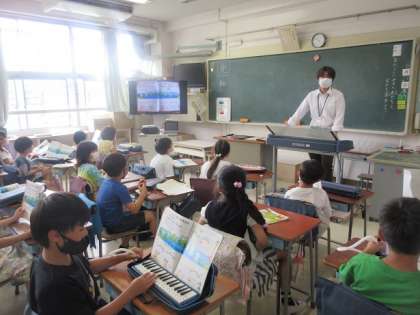 「かえるのうた」の輪唱です。楽しそうな歌声が聞こえてきます。