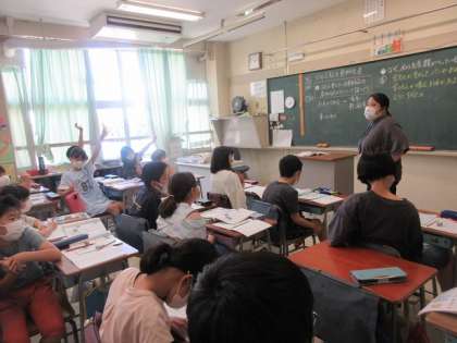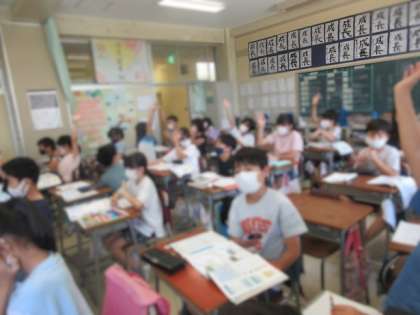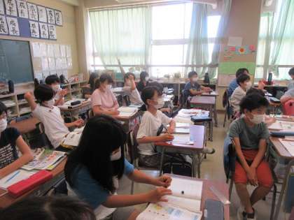 日常の食生活を振り返り、お米の自給率に関する学習をしています。