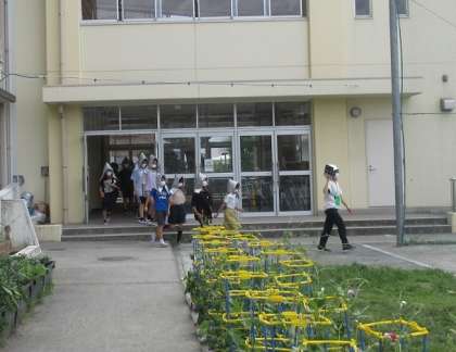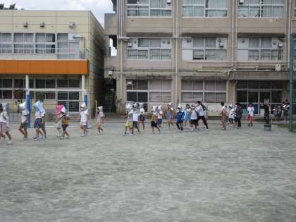 今月の避難訓練は、休み時間に地震が発生した時の訓練です。