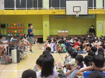 この夏の改修工事で、取り外すことになっている壁画への感謝の集会を行いました。代表委員の子ども達をはじめ、全校で壁画への思いを込め、準備をしてきました。