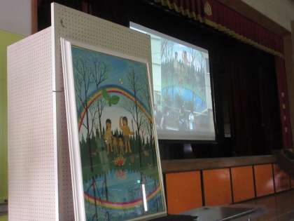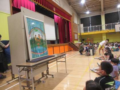 今日は世田谷美術館より、壁画の原画を学校へと運んでくださり、全校で鑑賞することもできました。