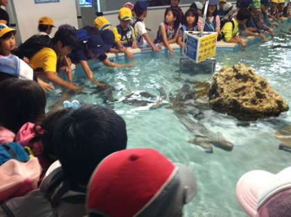 > エイやサメに触れる体験もでき子供達は大興奮でした。自分のお気に入りの魚を一生懸命観察することができました。