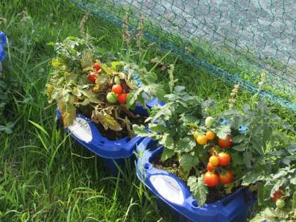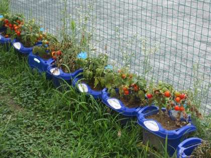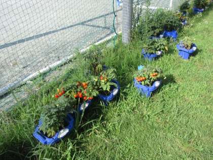校長室前のミニトマトに赤い実がたくさんつき始めました。