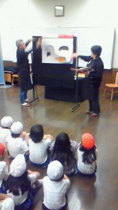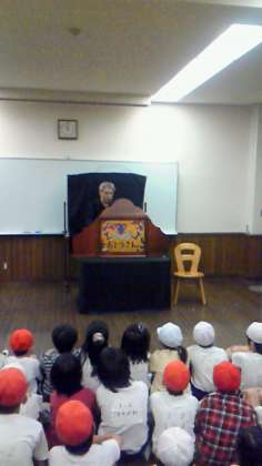 日本語の授業で親しんでいる北原白秋のあかいことりの詩から始まり、絵本の読み聞かせや詩のペープサート、素話、紙芝居、絵めくりシアター、新聞紙はなし、手遊びなど、内容が盛りだくさんでした。