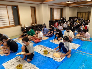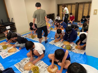 1日目の夜は、ふくべ細工の体験です。形を選んだり、デザインを考えたりしました。