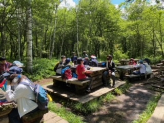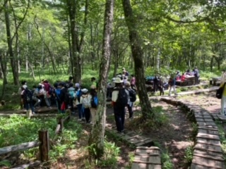 歩き始めて30分位で、1回目の休憩地、泉門池に到着。男体山が姿を現しました。